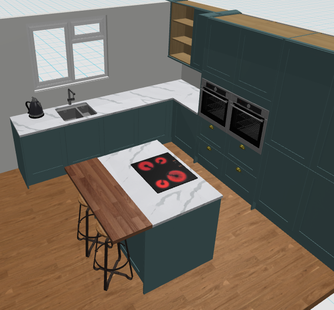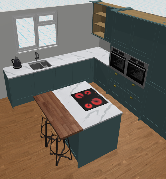 Sometimes clients come to me having successfully created their room and kitchen design in the planner but a professional option using my sense checking service.